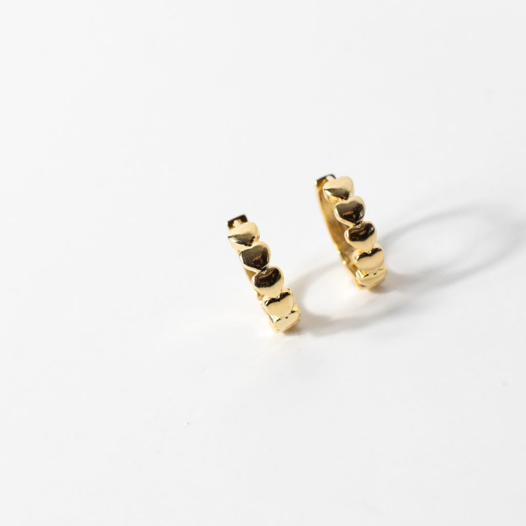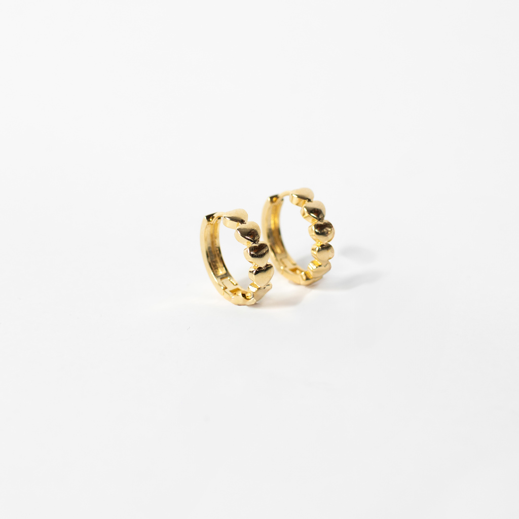 A Argola Chérie G Dourada perfeita para adicionar presença com significado ao seu visual. As argolas Chérie no tamanho G são ótimas para o primeiro furo. Argolas com tamanho ideal para se destacar nos looks de inverno. Elas trazem um toque feminino e um detalhe encantador em sua parte frontal: corações que simbolizam afeto.