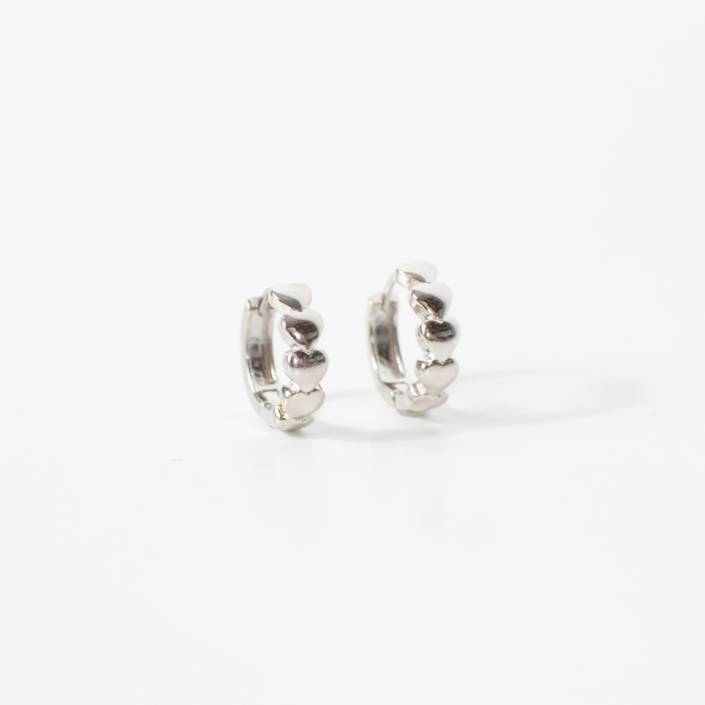 A Argola Chérie G Prateada tem design delicado, sua parte frontal é inteiro com detalhes de coração. Pode ser usada sozinha, ou com brinco e argolas menores.